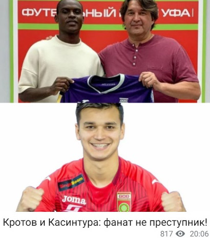 … поблагодарим за неожиданную поддержку протеста футболистов «Уфы» Вячеслава Кротова и Эгаша Касинтуру, досрочно покинувших поле в игре с «Динамо» («Багаж Аленичева»).