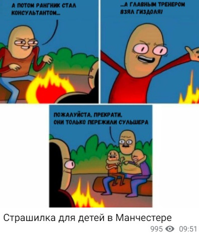 «Спартак» же победил «Ахмат», играя в меньшинстве час матча, но телеграм-каналам было куда веселее обыгрывать фамилию нового вратаря красно-белых Ильи Свинова. Среди комплекта банальных мемов нашелся и один хороший, за что спасибо «Багажу Аленичева».