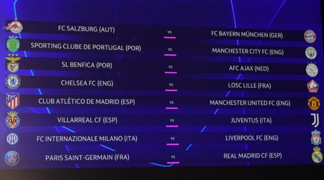 Напомним, что сеяными были клубы, занявшие первые места в своих группах. Ими стали «Ман Сити», «Ливерпуль», «Аякс», «Реал», «Бавария», «МЮ», «Лилль» и «Ювентус». Ответные матчи эти команды играют дома. Несеяными оказались вторые клубы квартетов — «ПСЖ», «Атлетико», «Спортинг», «Интер», «Бенфика», «Зальцбург», «Челси» и «Вильярреал».