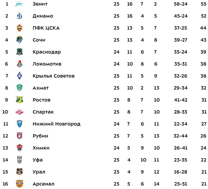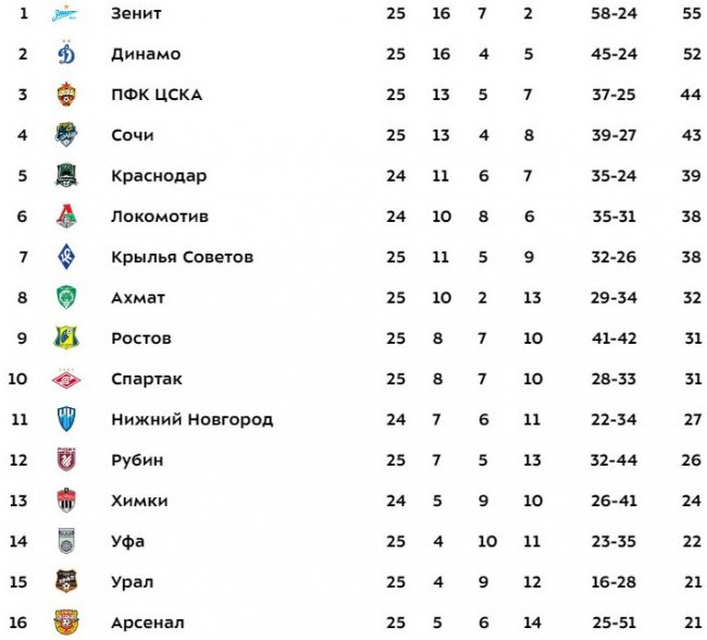Ничья же могла порадовать разве что ЦСКА, сохранившего третье место. «Сочи» отстает от армейцев на очко.