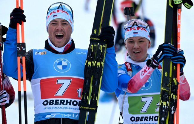 На этапе Кубка мира в Оберхофе Антон Бабиков и Кристина Резцова выиграли спринтерскую смешанную эстафету. У наших был штрафной круг, по ходу гонки они выбирались с 12-го места, но на финише