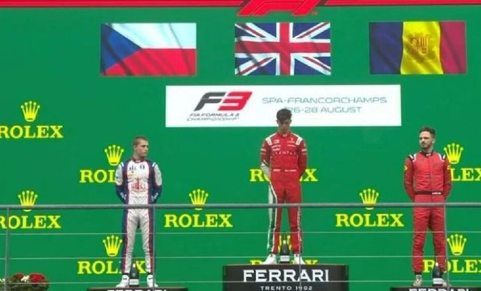 На церемонии награждения случился анекдот: за третьей ступенью подиума, куда поднялся российский пилот, висел… сине-желто-красный флаг карликового государства Андорра. Организаторы неправильно расшифровали аббревиатуру AND (Authorised Neutral Driver – авторизованный нейтральный гонщик), под которой Смоляр выступает в нынешнем сезоне. Как известно, российская символика находится под запретом из-за санкций FIA – когда Александра награждали за победу в Венгрии, на месте флага висело белое полотнище, а гимн не исполняли вовсе.