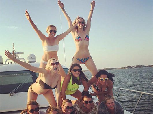 Дженнифер Лоуренс предпочитает отдыхать в большой компании подружек. И даже на яхте девушки не просто загорают и лениво потягивают коктейли, а довольно активно проводят время. Например, строят пирамиды. И актриса забралась на самый верх.