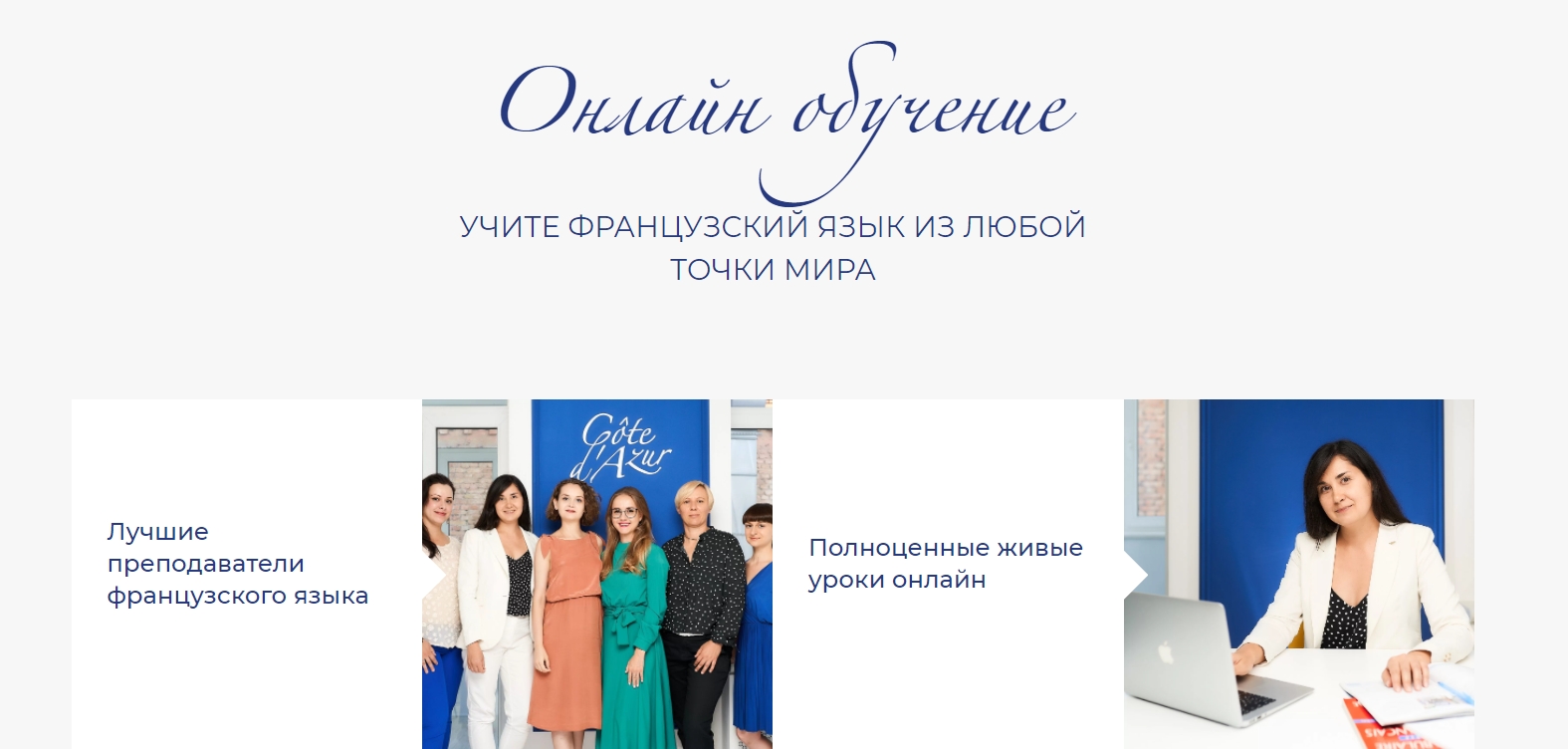 Самоучители в Интернете Cote d'Azur – это курсы французского онлайн. Предлагается 5 вводных уроков и 24 основных занятия. Курс подходит для пользователей с хорошей слуховой памятью. Придётся много слушать и читать. Регистрироваться на сайте не надо. Ресурс бесплатный и доступен даже для тех, кто не имеет представление о французском языке.