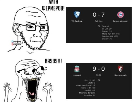 А «Манчестер Сити» одержал волевую победу над «Ньюкаслом» (4:2) в матче, в котором к 53-й минуте проигрывал в два мяча (Футбольные мемы»).