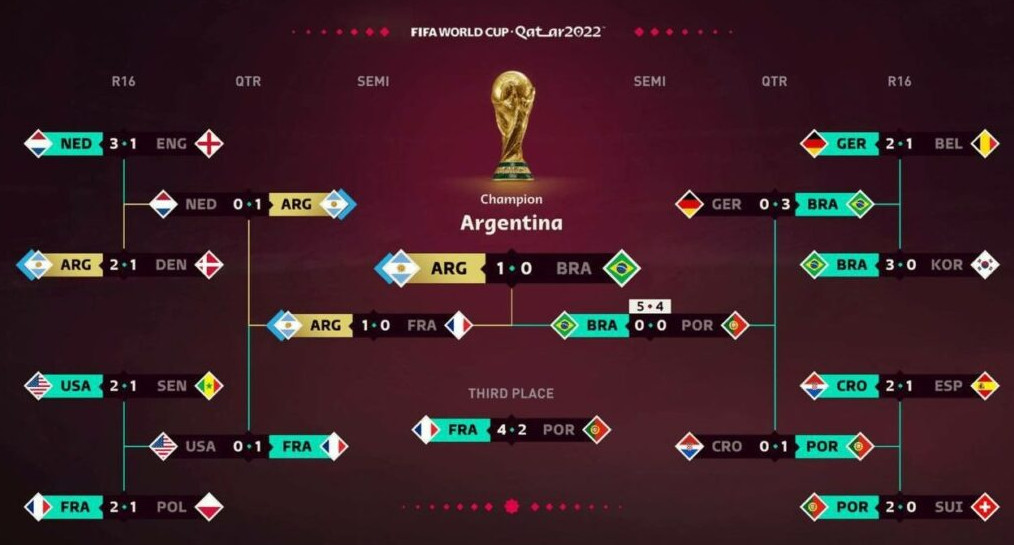 Угадали будущего чемпиона мира и в EA Sports. Но с этими ребятами давно все понятно. До этого они правильно предсказывали победителей ЧМ-2010 (Испания), ЧМ-2014 (Германия) и ЧМ-2018 (Франция). Правда, с финалом ЧМ-2022 «фифашный» симулятор подкачал, определив в соперники Аргентине бразильцев, которые сошли с дистанции на стадии четвертьфинала.