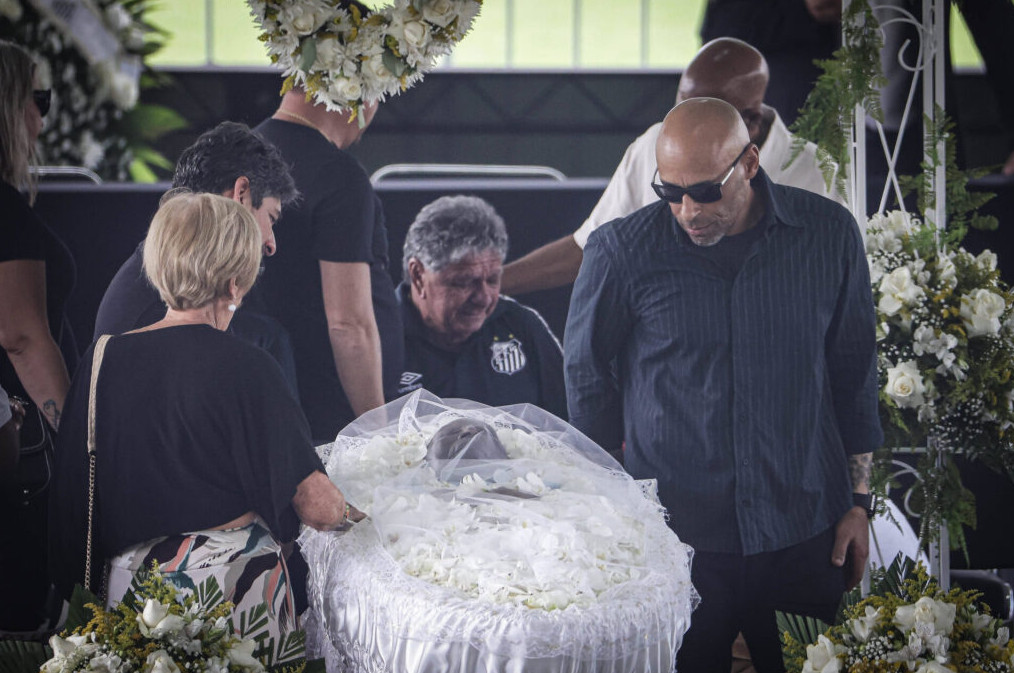 Гроб с телом был установлен в центре футбольного поля, на котором Пеле дебютировал в 1956 году. Вокруг гроба установили почетный караул и пышные белые венки. «Приехали домой», – написал в соцсетях сын суперзвезды Эдсон Шолби, когда легенду привезли на «Вила Белмиро». На сайте «Сантоса» появилось сообщение: «Как он всегда хотел, наш вечный король Пеле прощается со своим народом у себя дома».