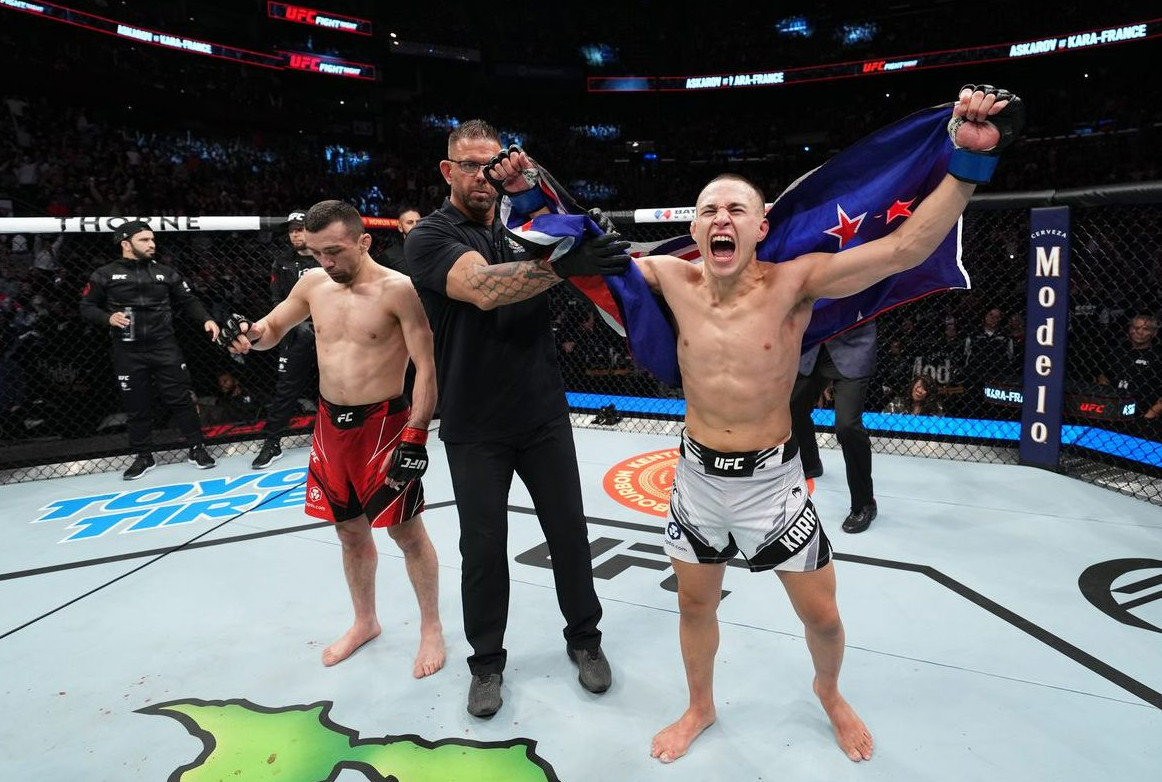 Очень огорчил российских болельщиков наш звездный представитель в наилегчайшем дивизионе Аскар Аскаров. Его обидчиком стал новозеландец Кай Кара-Франс. Наш боец забрал первый раунд за счет борьбы, но в двух последующих не сумел навязать оппоненту грепплинг. А в стойке Кара-Франс был убедительнее. Впрочем, не намного. Все трое судей отдали новозеландцу победу со счетом 29-28. Теперь Кай наверняка побьется за титул с Дейвесоном Фигейредо. А вот Аскарову, потерпевшему первое поражение в карьере, остается сожалеть об упущенном супершансе.