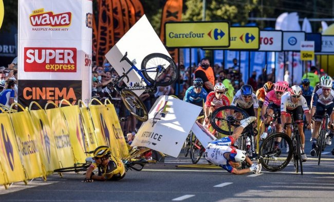 Велогонщик Дилан Груневеген вытолкнул соперника с трассы ради победы. Скорость гонщиков – 80 км/ч - «Велоспорт»